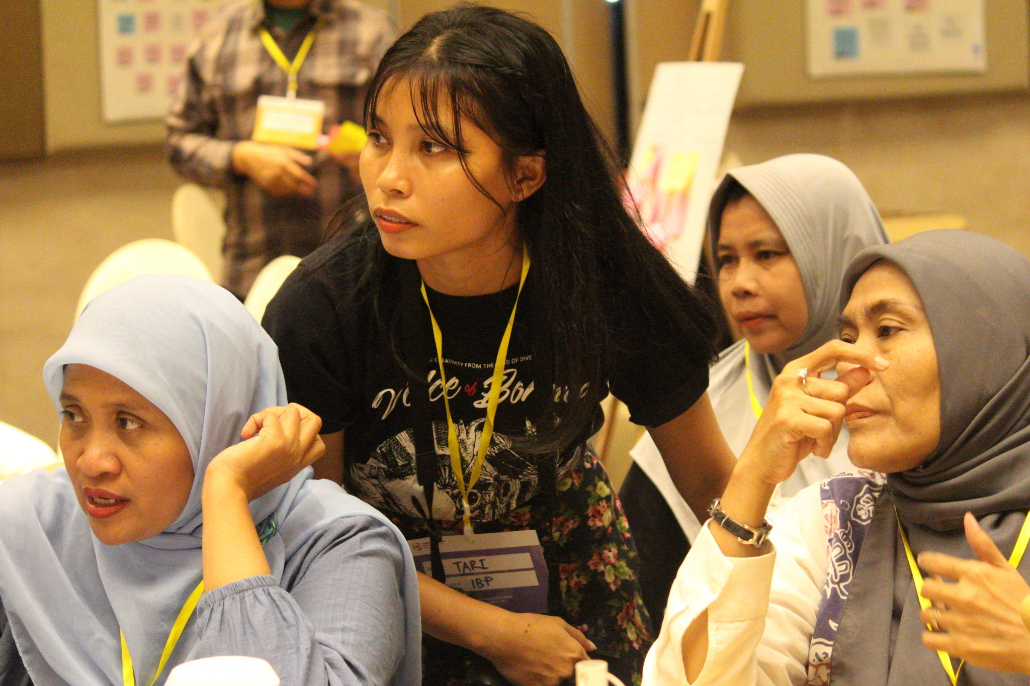 Salah satu yang turut berkerumun di antara mereka adalah Marilyn Lee, anggota Himpunan Wanita Disabilitas Indonesia (HWDI) Sumatra Utara (Sumut). Ia tampak khusyuk mencatat apa saja yang sudah dilakukan komunitasnya dalam bulan-bulan terakhir. Spidol hijau yang ia pegang bergerak mengikuti pergerakan tangannya. Kadang spidol berhenti saat Marlyn Lee mencoba mengingat sesuatu. Kadang terhenti ketika ia bercakap-cakap dengan rekan di sebelahnya. Kadang bergerak lagi cepat.